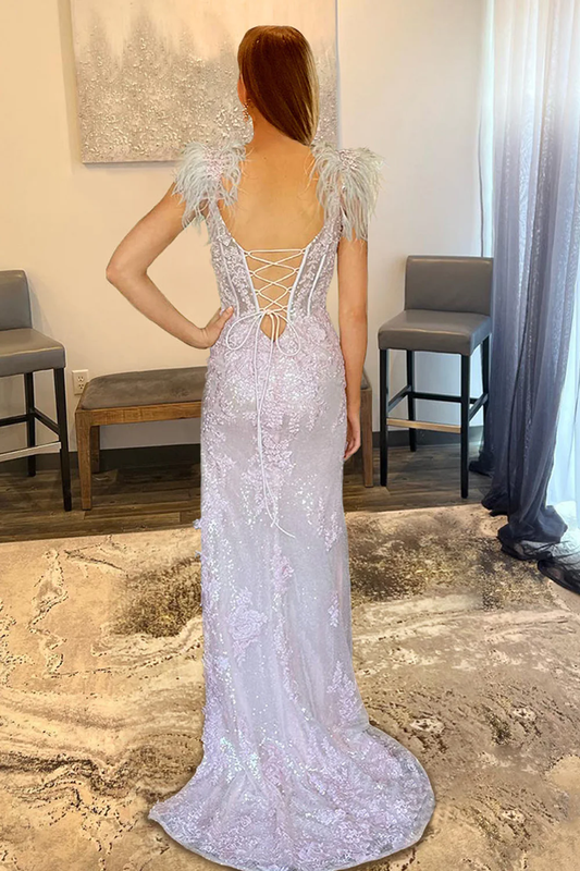 Lavender Appliques Mermaid Prom Dress with Feathers nv649