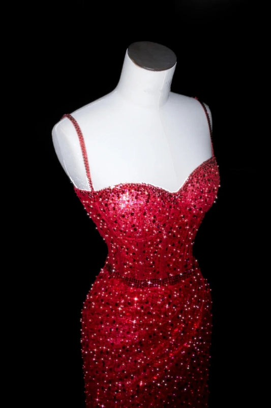 NiceVestidos--Blazing Shine Style:Scarlet Sequin - Embellished Spaghetti - Strap Mermaid Floor - Length Evening Dress NV5816