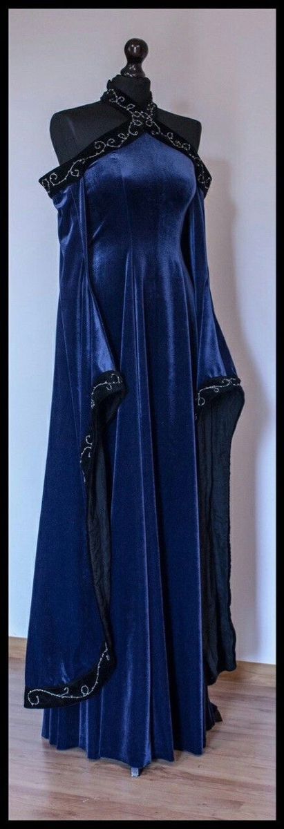 NiceVestidos--Blue velvet medieval-style gown NV5753