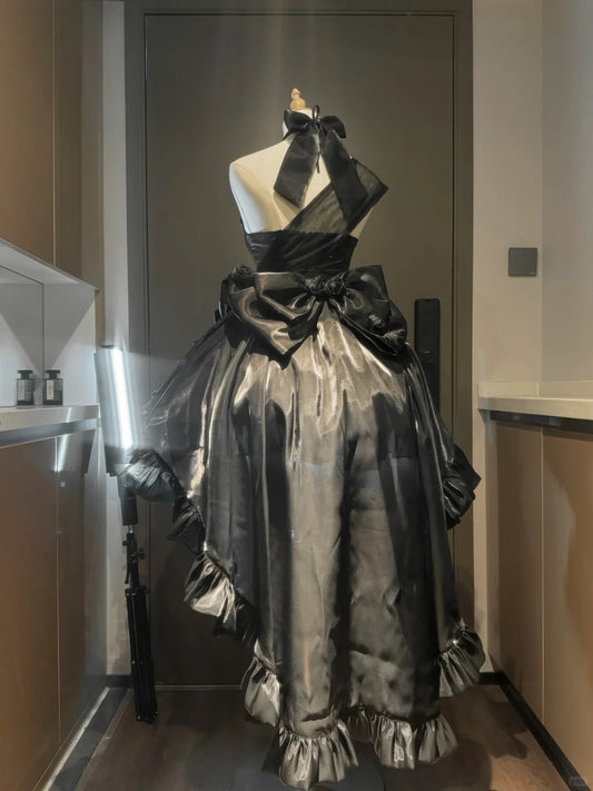 Hepburn-style Black Off-the-shoulder Mini Dress: Backless Waist, Puffy Skirt, Diva-style Evening Gown NV6413