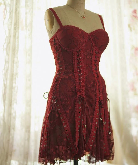 Red Exquisite Lace Spaghetti Straps Sweetheart Neck Short Homecoming Dress Prom Dress Birthday Party Dress nv3881