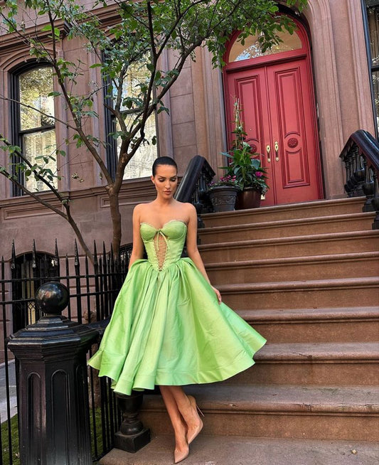 White tube top fashionable elegant satin mid-length embroidered ball gown evening dress nv3040