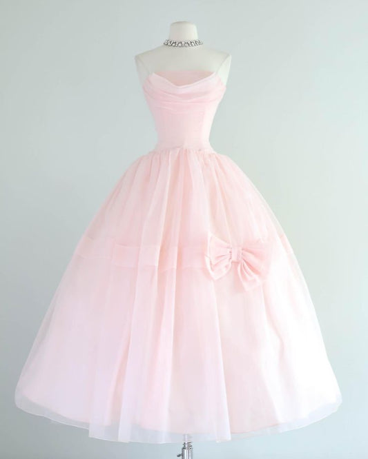 Pink Tulle Fashion Tulle Midi Bow Homecoming Dress Party Dress nv3038