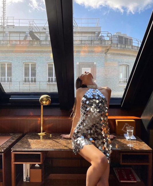 Silver Glitter Backless Sequin Club Short Mini Dress Party Dress nv2745