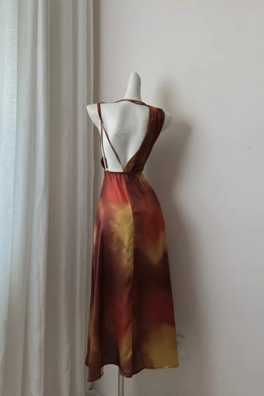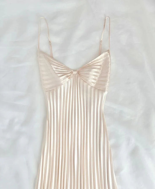 NiceVestidos-Long simple spaghetti strap satin pleated prom dress, retro dress Nv5630