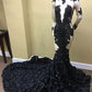 Black sexy elegant mermaid see-through long tail long sleeve ruffled ball gown evening dress nv3227
