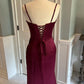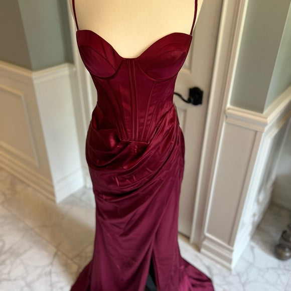 Burgundy elegant fashion new arrival exquisite corset long satin floor-length sexy slit ball gown evening dress party dress nv3647