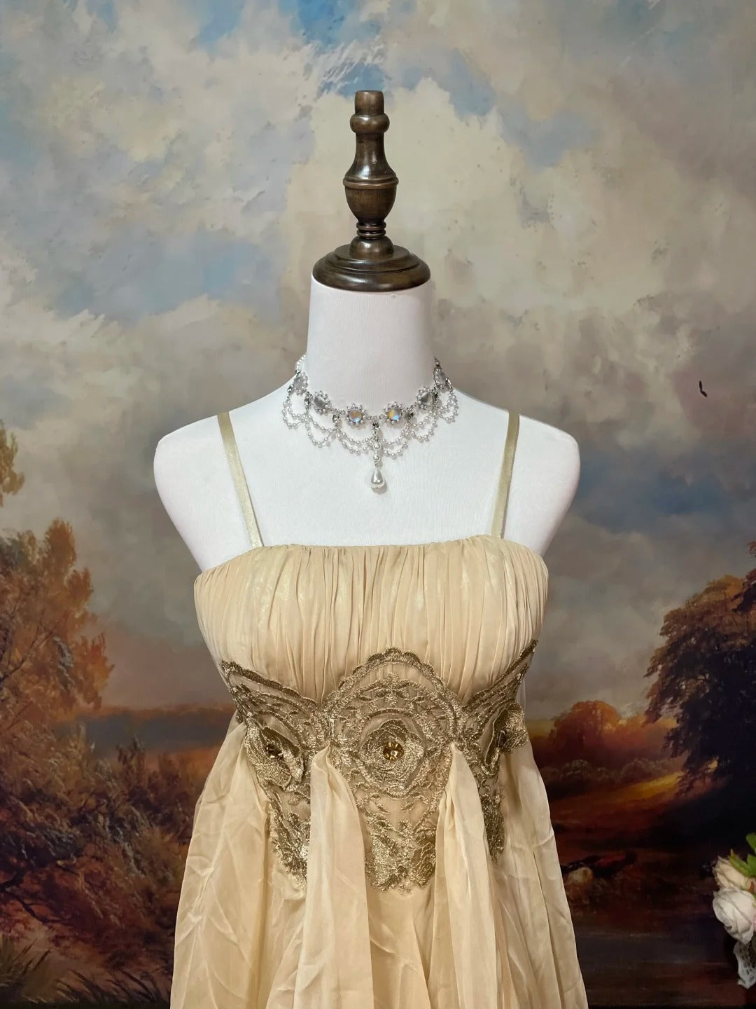 Champagne Brown Vintage Elegant Retro Fashion Romantic Exquisite Lace Floor Length Tulle Ball Gown Evening Gown Prom Gown nv4078