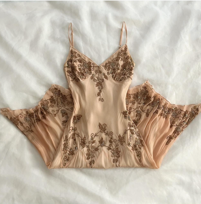 Cream brown delicate beaded mid-length chiffon prom dress nv5353