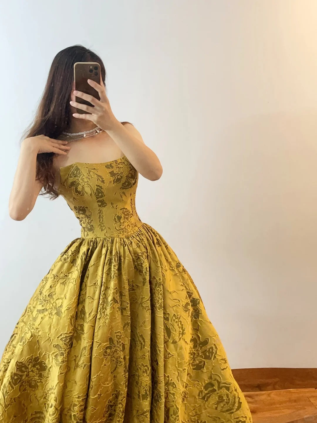 Gold Fashion Elegant Vintage Long Satin Ball Gown Evening Dress nv4774
