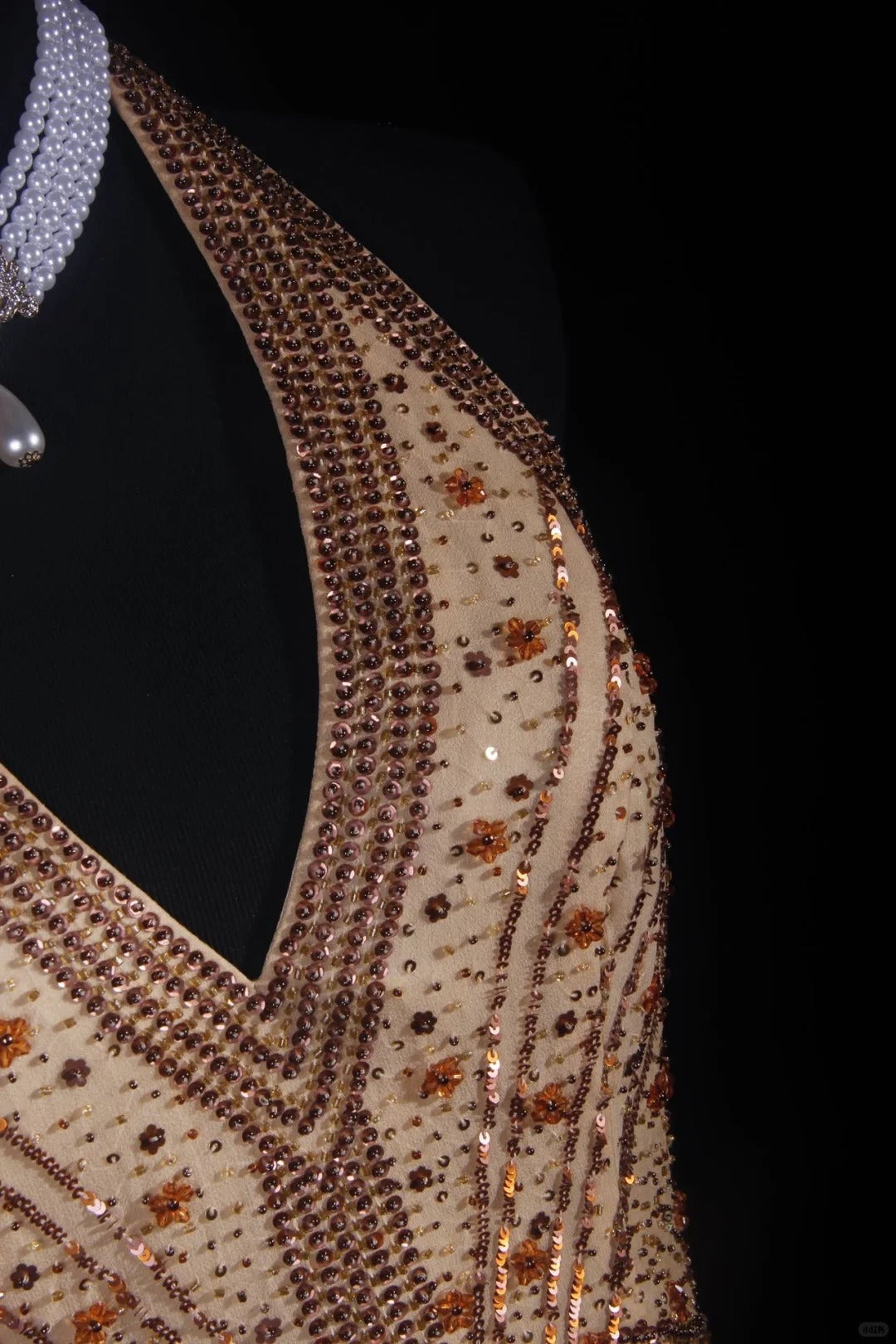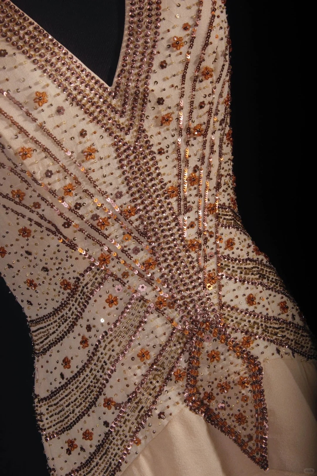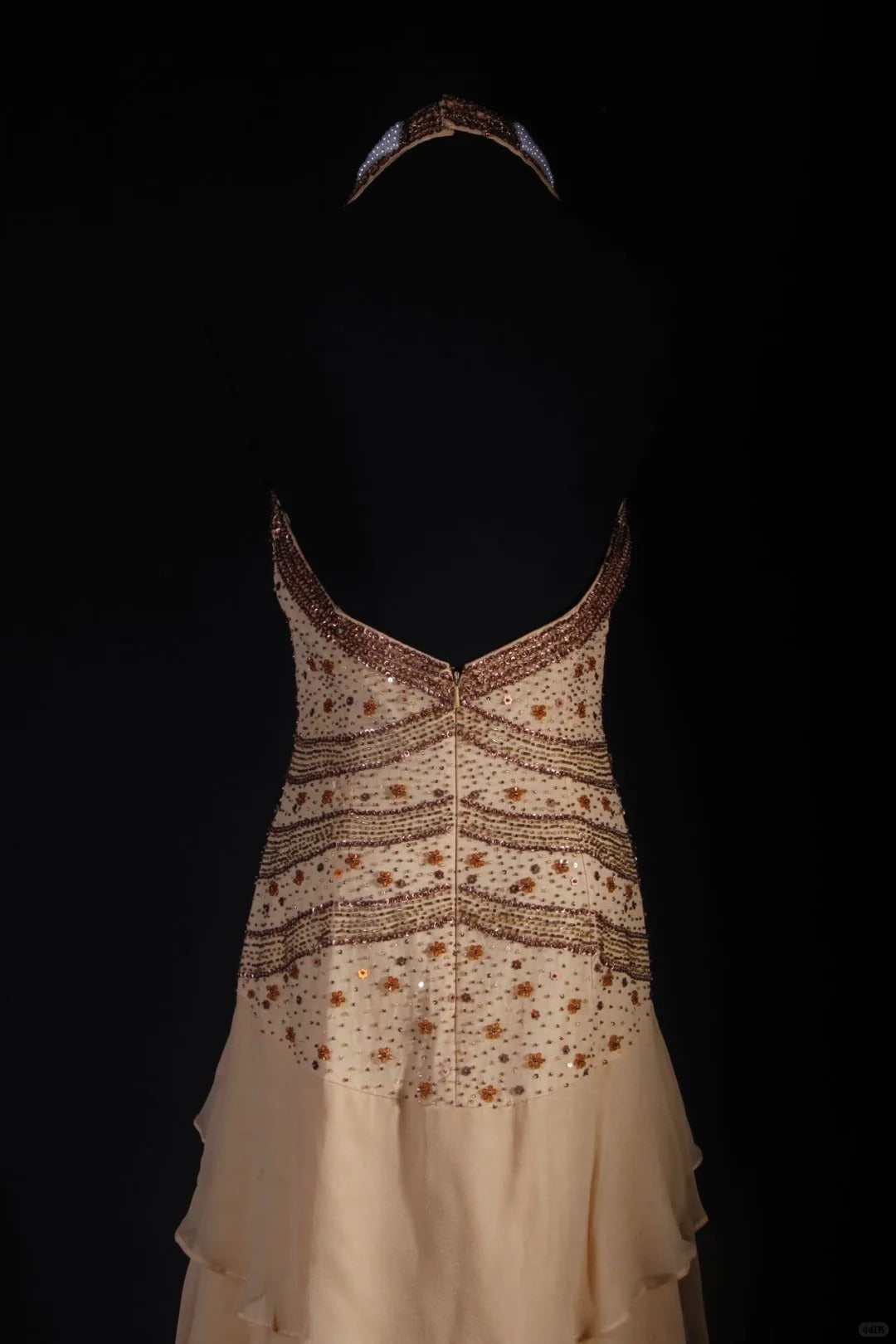 Khaki Beaded Gorgeous Exquisite Backless Strapless Long Chiffon Ruffle Ball Gown Party Dress nv5209