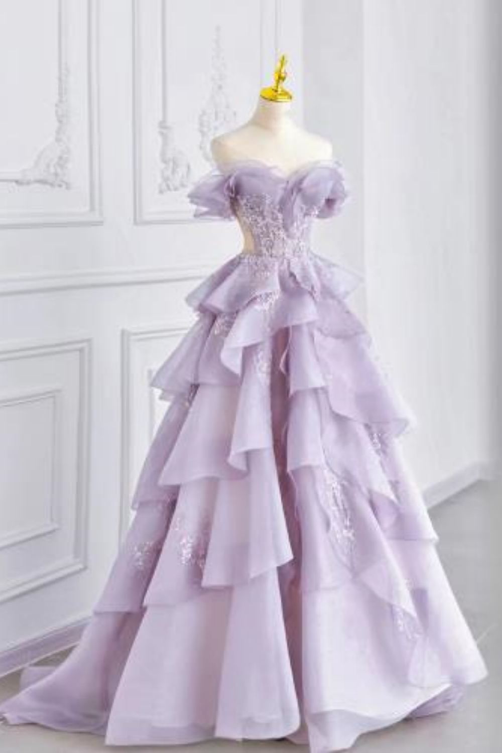 Lilac Elegant Fairy A-line Off-shoulder Long Tulle Ball Gown Evening Dress nv3520