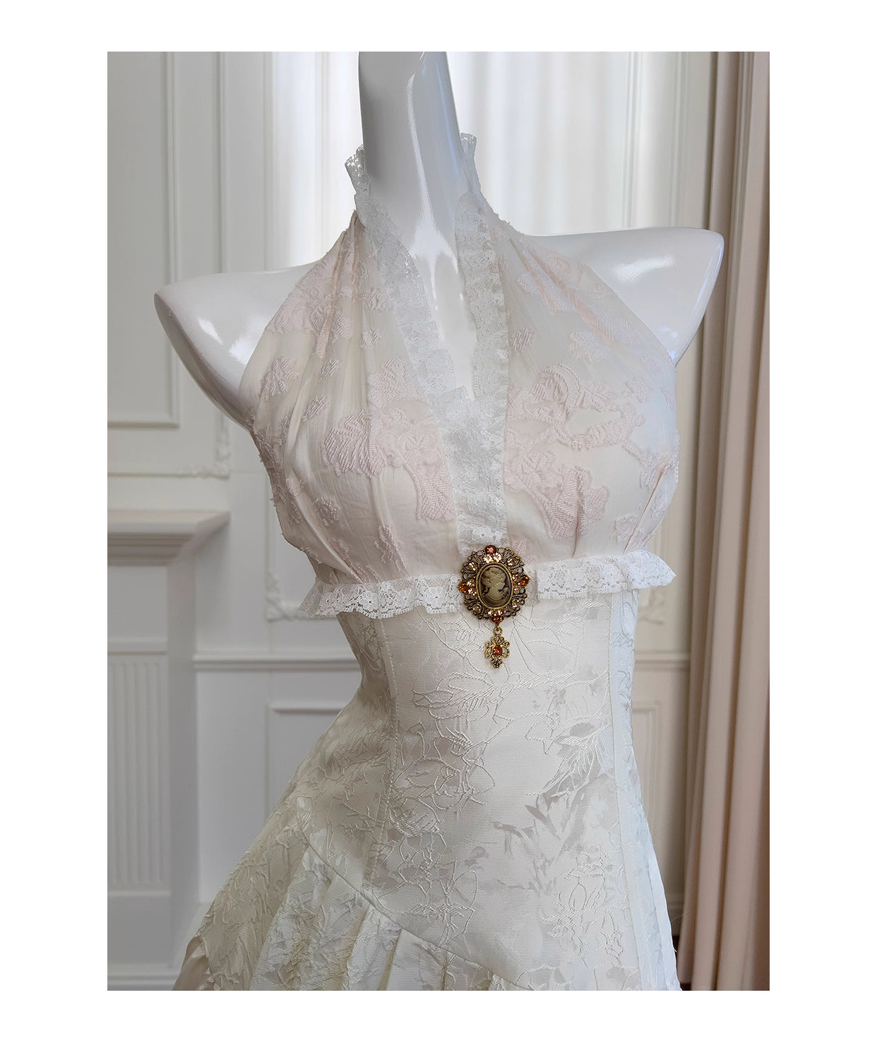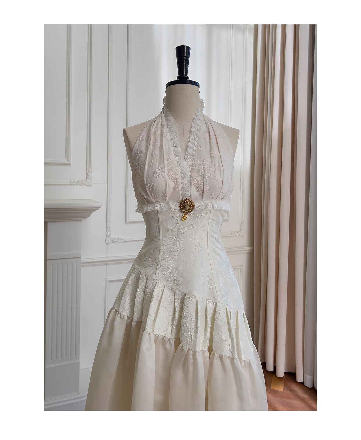 NiceVestidos-Homecoming Dress Apricot Waist Slimming Mid-Length Elegant Halterneck Backless Dress nv5552