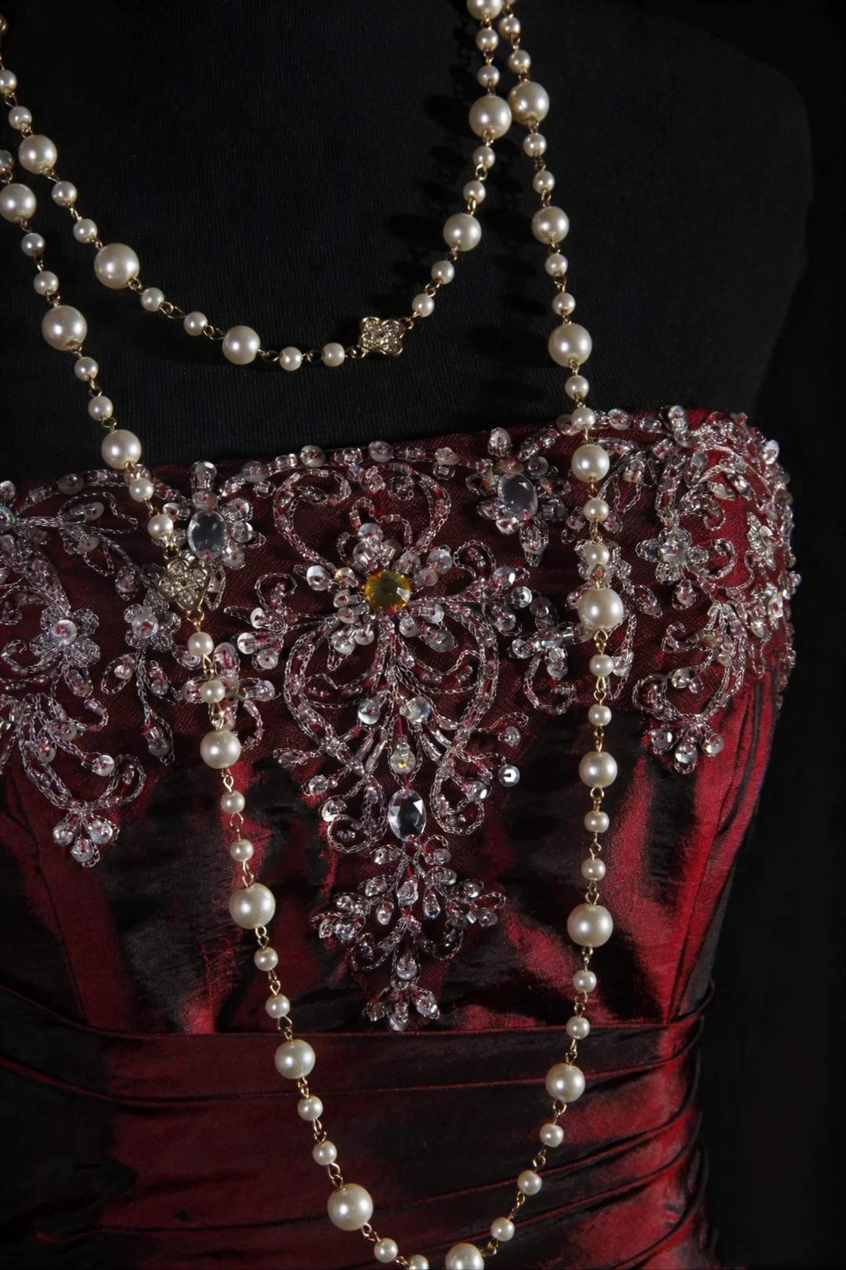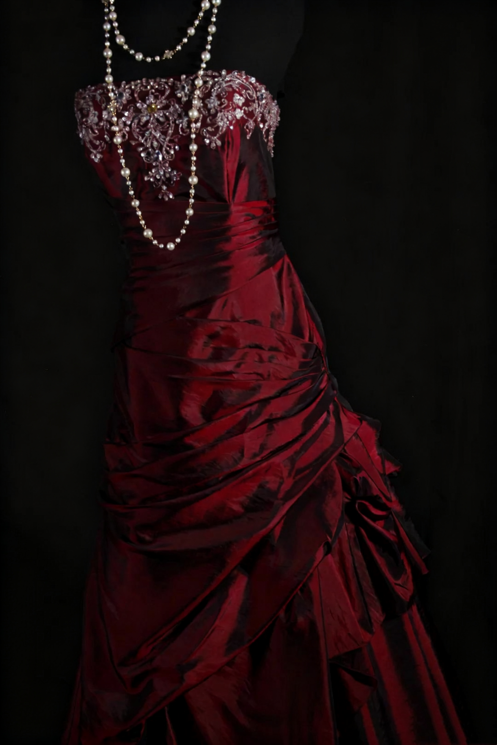 NiceVestidos--Vintage Burgundy Exquisite Beaded Satin Pleated Long Ball Gown Graduation Dress NV5859