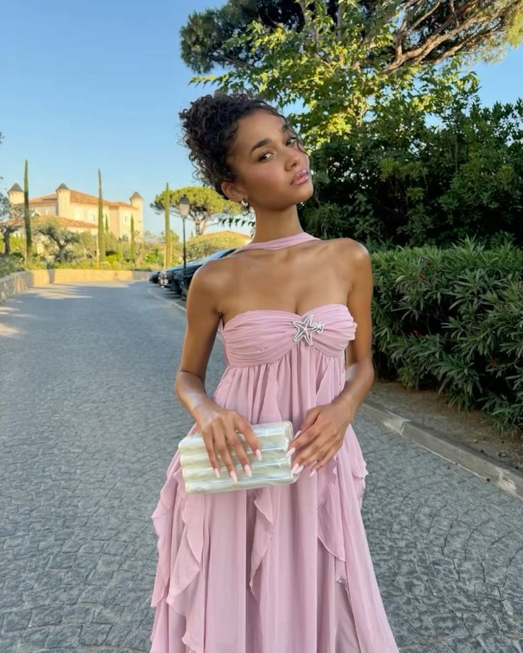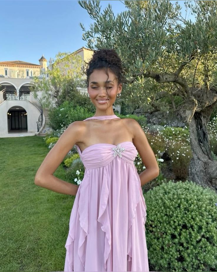 Pink Chiffon Sweet Dreamy Starfish Decorated Maxi Dress Long Evening Dress Party Dress nv2690