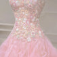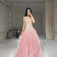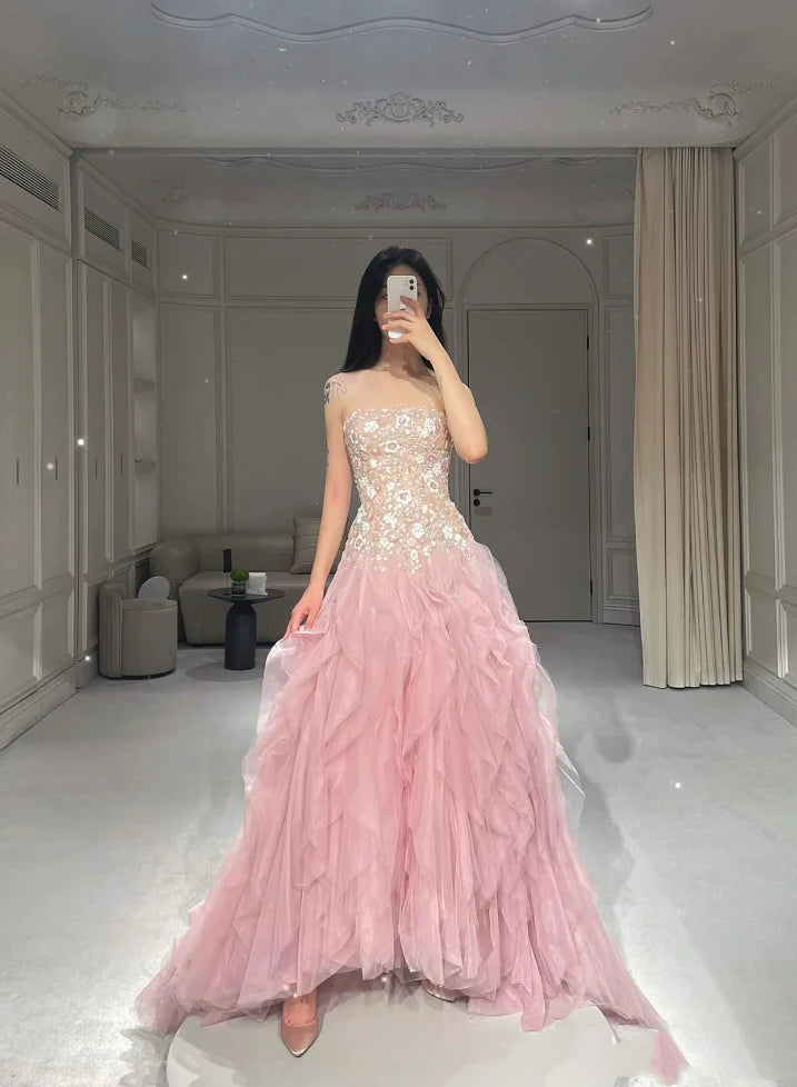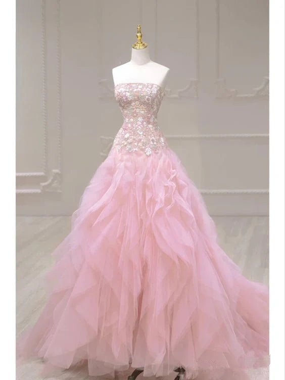 Pink Luxury Exquisite Floral Long Elegant Fairy Ball Gown Off Shoulder Tulle Ball Gown nv3307