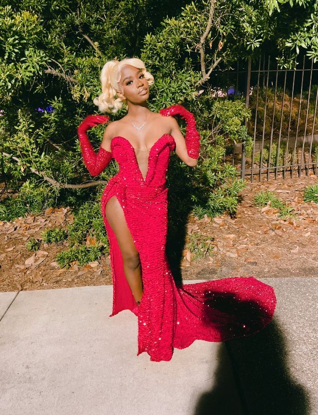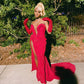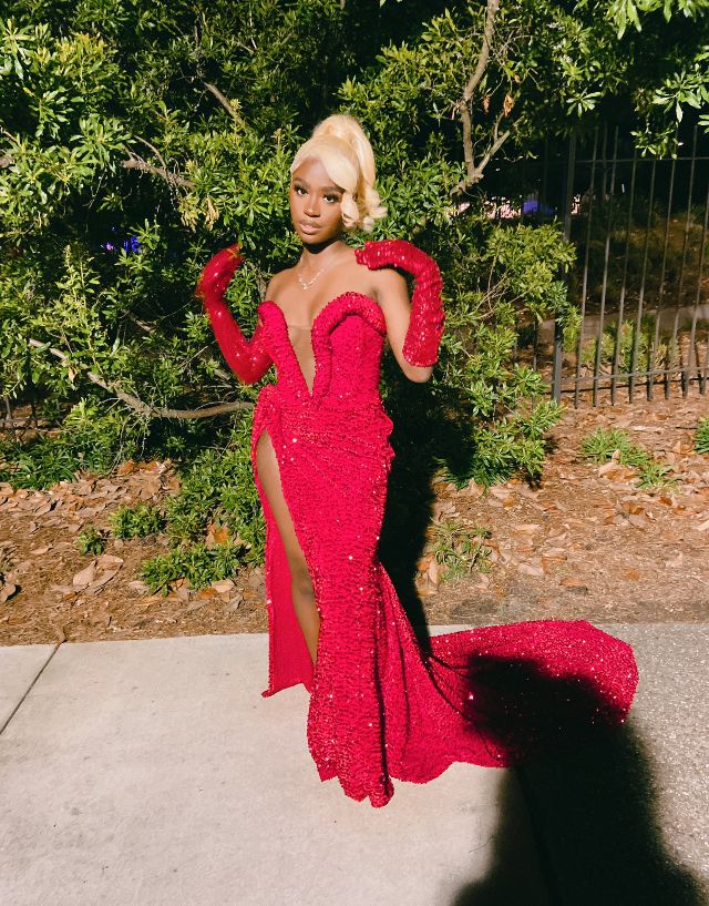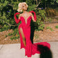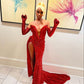 Red/Pink Shiny Sequins Elegant V-Neck Long Slit Sexy Ball Gown Evening Dress Party Dress With Gloves nv3241