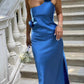 Sexy A line Backless Royal Blue Satin Prom Dresses nv1551