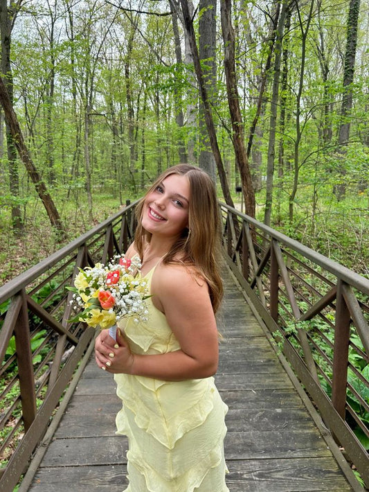 Yellow Fashion Elegant Long Chiffon Ruffle Ball Gown Evening Dress Party Dress nv3490