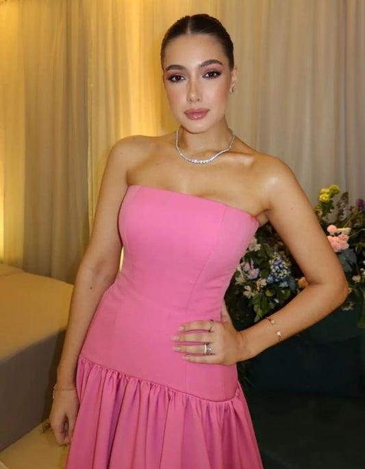 Pink solid color simple elegant pleated strapless tube top long ball gown evening dress party dress nv2489