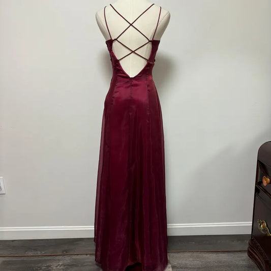 Dark red burgundy retro fashion simple fashion shiny exquisite beaded lace-up back long satin elegant princess ball gown, evening dress, party dress nv3709