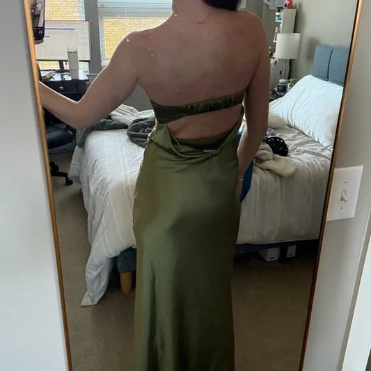 Green simple elegant A-line tube top long dress prom dress evening dress party dress nv2504
