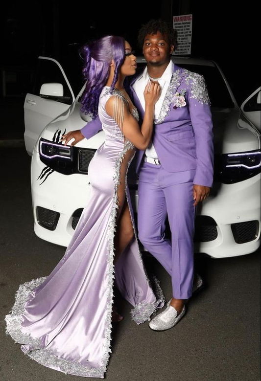 Light Purple Vintage Elegant Exquisite Floral Beading Long Satin Tulle Ball Gown Evening Dress Birthday Party Dress Prom Dress nv4001