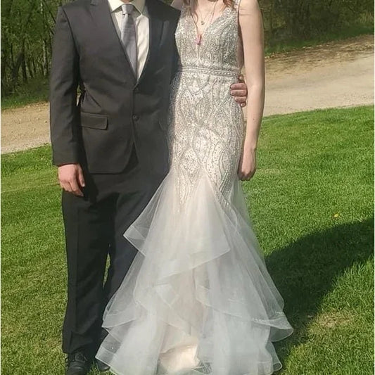 Cap Sleeves Long Mermaid Sequins Prom Dress nv60