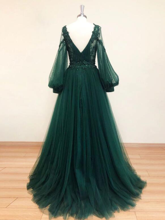 Beautiful Green Tulle Long Sleeves Wedding Party Dresses, Green Prom Dresses Party Dress nv453