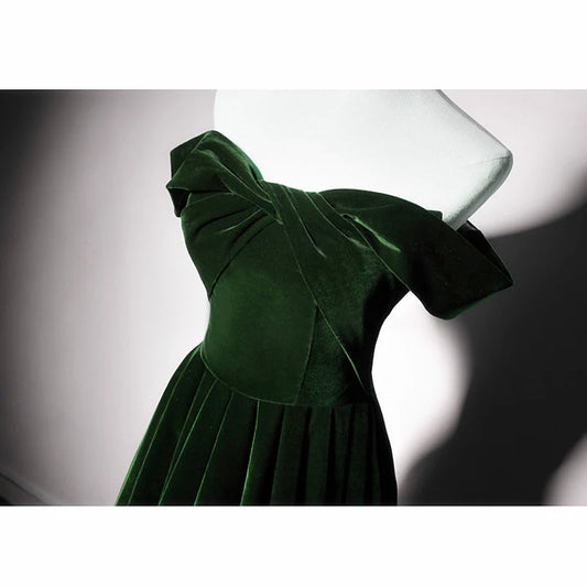 Beautiful Green Off Shoulder A-Line Velvet Long Party Dress Bridesmaid Dresses Prom Dress Evening Gown nv2018