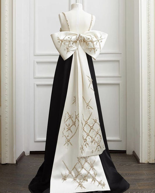 Black Gothic Vintage Elegant Long Satin White Tulle Ball Gown Evening Dress Party Dress nv2604