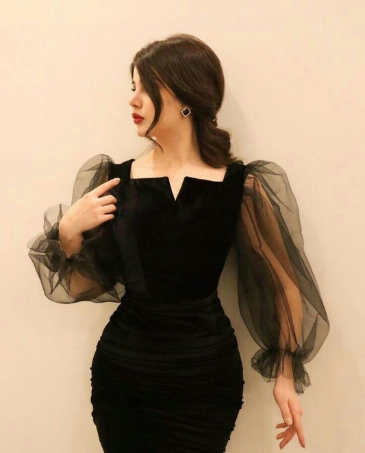 Black simple elegant slim short birthday dress homecoming dress party dress with gloves nv2206