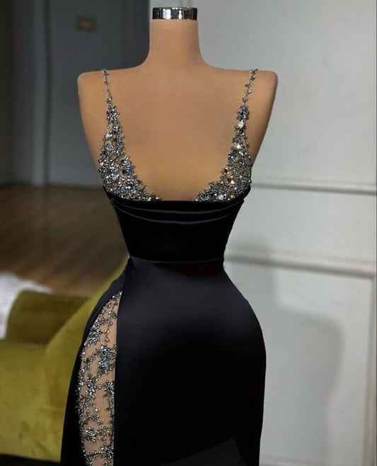 Black simple elegant V-neck rhinestone gorgeous long sexy ball gown evening dress nv2772