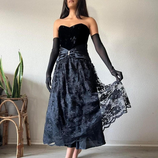 Black vintage velvet elegant long ball gown evening dress nv2941