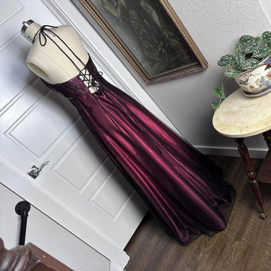 Black/Burgundy Vintage Fashion Exquisite Beading Elegant Backless Long Satin Tulle Formal Prom Dress Evening Gown Party Dress nv3743