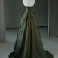 A-Line V Neck Satin Green Long Prom Dress, Green Long Evening Dress nv1604