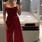 Beautiful Burgundy Spaghetti Strap Long Slit Mermaid Ball Gown Evening Dress nv2782
