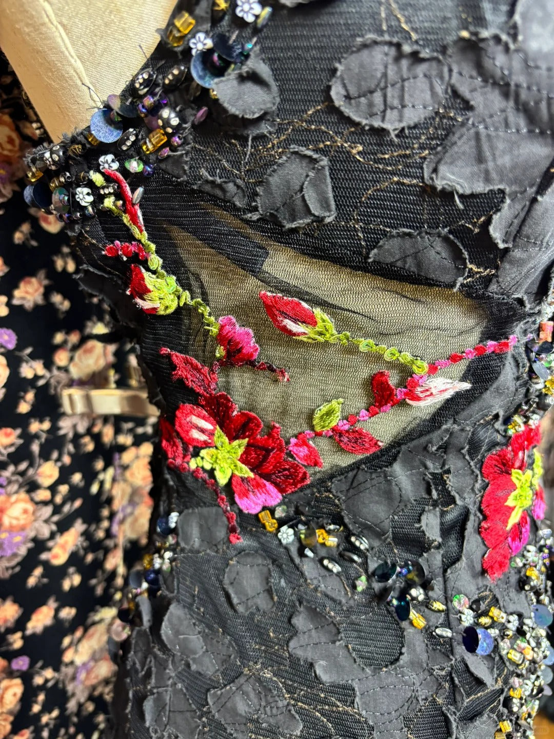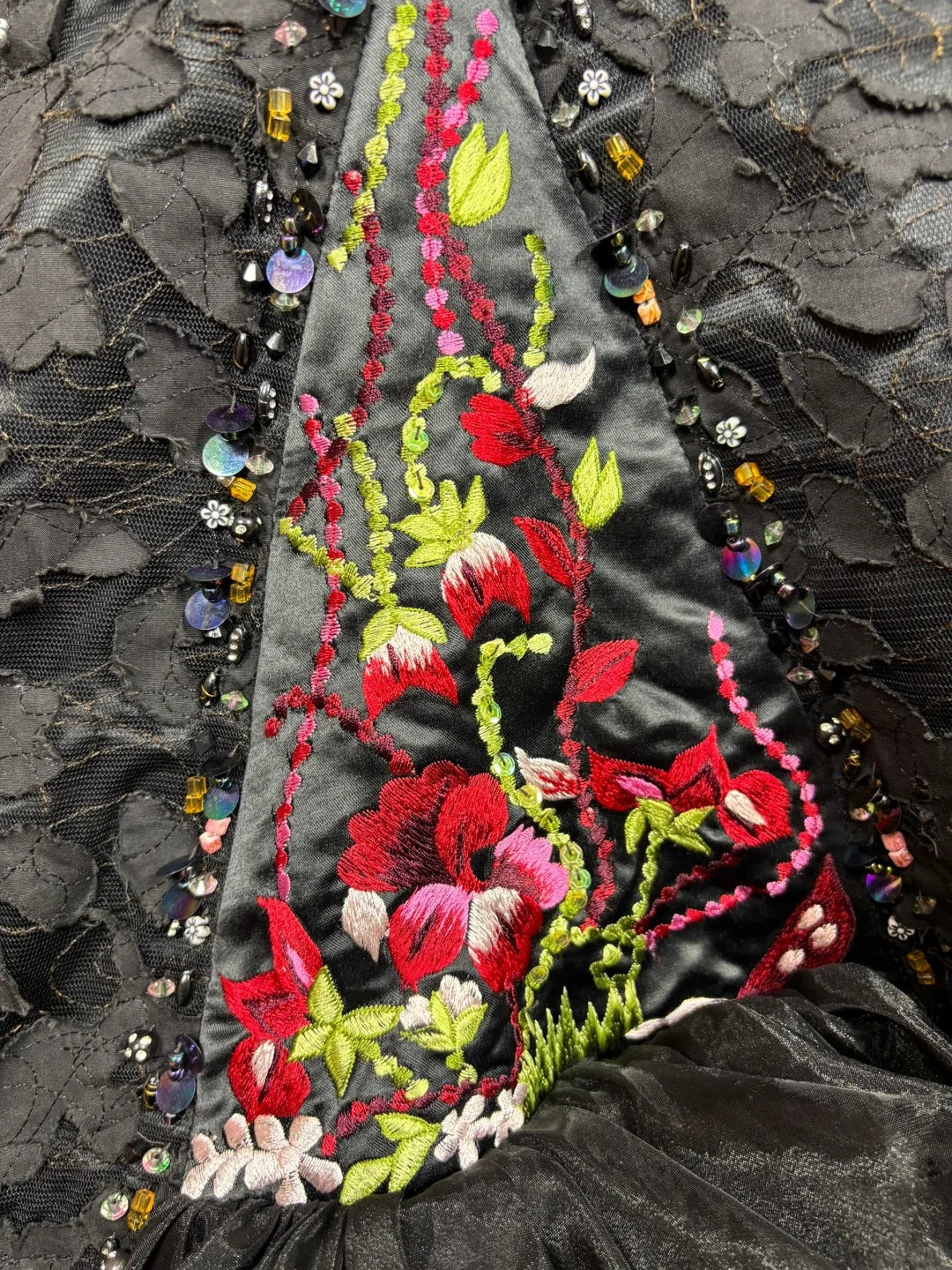 Black floral beaded long mermaid fishtail ball gown evening dress quinceanera dress nv4641