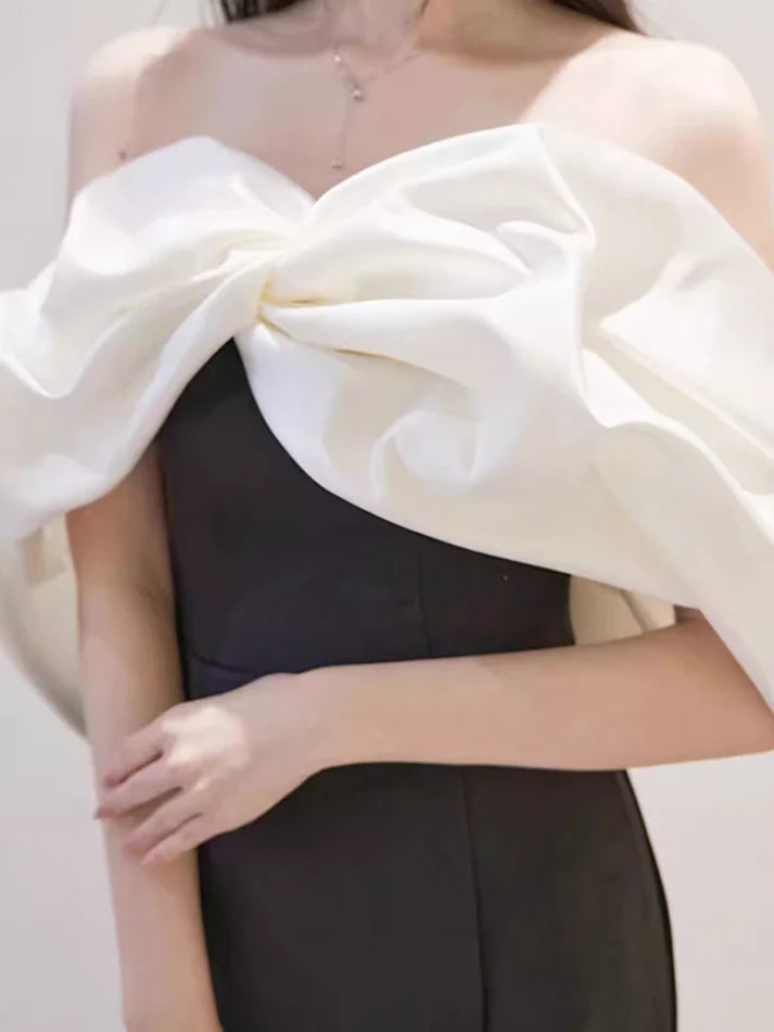 Black off-shoulder white short-sleeved satin mermaid black satin long ball gown evening dress party dress nv2528