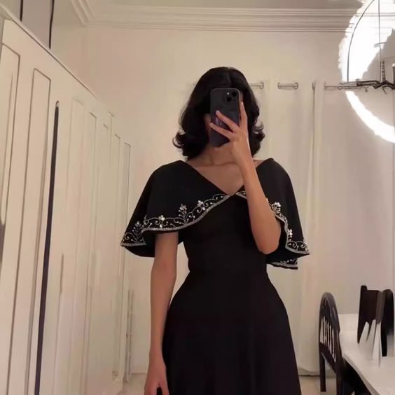 White/Green/Black simple elegant cape style embroidered long Prom Dress evening dress party dress nv2421