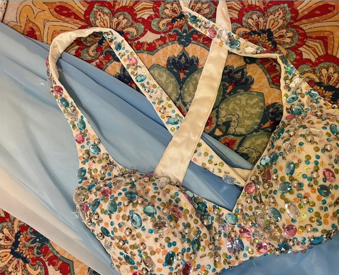 Blue rainbow beaded long chiffon mermaid ball gown evening dress party dress nv4318