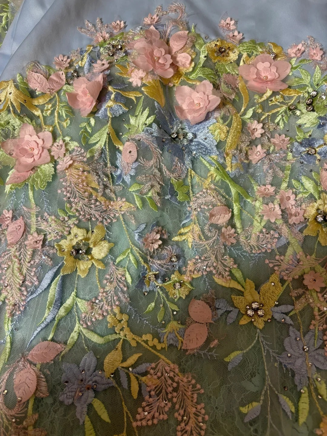 Blue Sweet Elegant Delicate Floral Beaded Long Tulle Mermaid Slim Fit Floor Length Trailing Ball Gown Evening Gown Party Dress nv4131