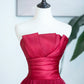 Burgundy Strapless Tulle Prom Dress, Burgundy Long Formal Dress nv1584