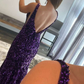 Charming Mermaid Deep V Neck Purple Sequins Long Prom Dresses nv227