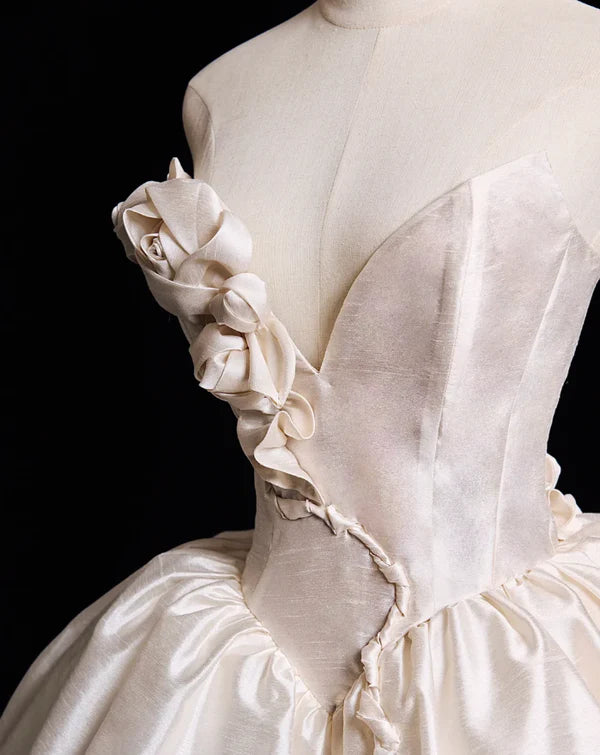 Cute A Line V Neck 3D Floral White Satin Short Homecoming Dress Birthday Dress nv5395