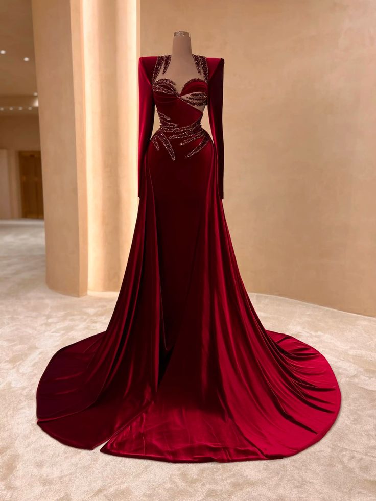 NiceVestidos-A Gorgeous, Sparkling, Exquisitely Beaded Long-Sleeved, Floor-Length Prom Gown. NV6117