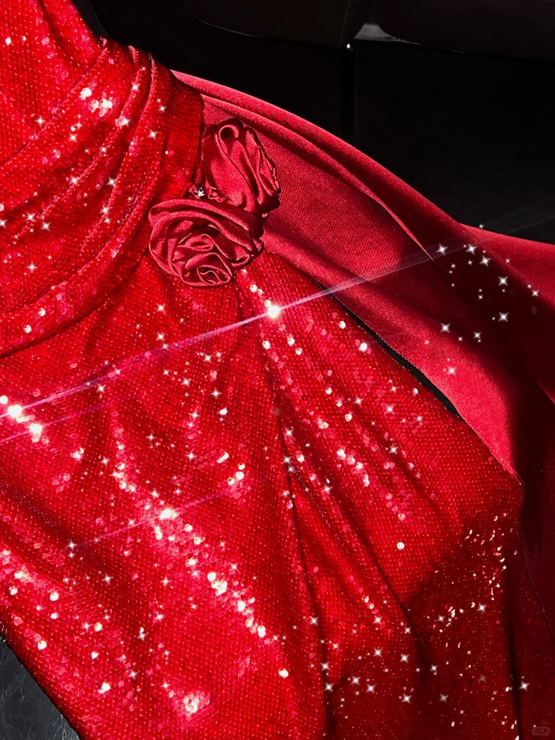 Red shiny elegant sexy long ball gown evening dress party dress nv4684