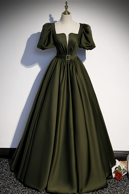 GREEN SATIN LONG PROM DRESS A LINE EVENING GOWN nv390