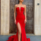 Sexy Mermaid Strapless Satin Prom Evening Dresses with Side Slit nv497