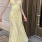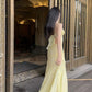 Sweet Elegant Mermaid Spaghetti Strap Yellow Chiffon Long Ball Gown Evening Dress with Beading nv2759
